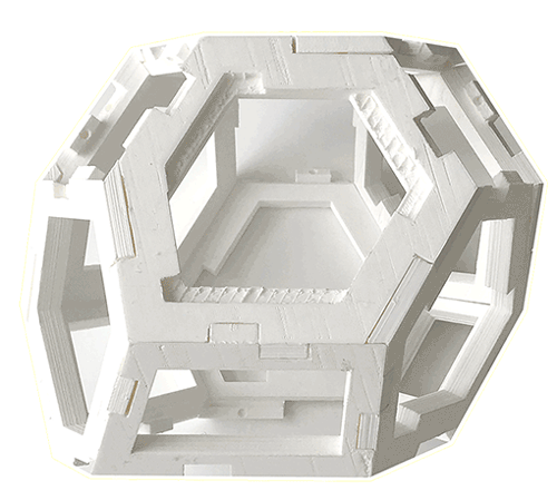 CNC cutting foam boards that are then coated with fibreglass. The micro unit covers 21 sqm of space with a footprint of 11sqm and 8.5 cubic meters of storage space, providing a comfortable and flexible interior with minimal carbon footprint. The space is organised vertically offering a stimulating experience to the dweller.
