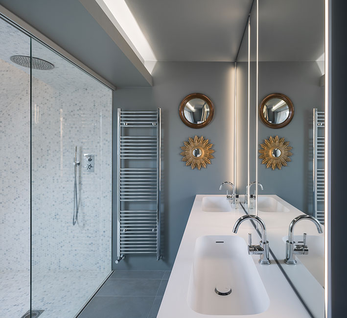 growing family. In particular, the intervention focuses on re-planning the ground floor hallway and the top floor’s master bedroom, as well as upgrading materials and finishing throughout the house.